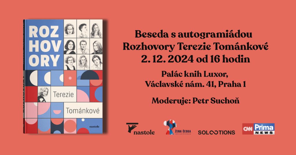 Srdečně vás zveme na besedu s autogramiádou ke knize Rozhovory Terezie Tománkové. Akce proběhne v pondělí 2. prosince od 16 hodin v kavárně Paláce knih Luxor (Václavské nám. 41, 1. patro) v Praze.