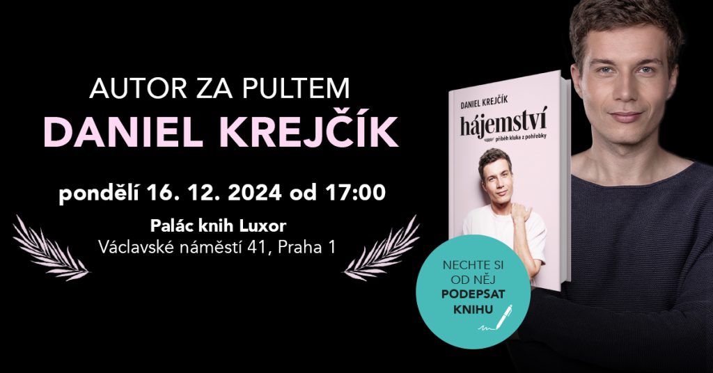 Přijďte se setkat s oblíbeným autorem v nové, nezvyklé roli! Za pokladnou v přízemí Paláce knih Luxor bude stát oblíbený autor a herec Daniel Krejčík. Přijďte se s ním setkat, nechte se obsloužit a třeba si i nechte podepsat jeho novinku Hájemství.