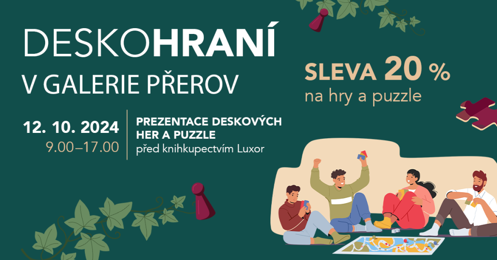 Srdečně vás zveme na DESKOHRANÍ v Galerii Přerov! 12. října od 9 do 17 hodin bude před knihkupectvím Luxor v Galerii Přerov probíhat prezentace deskových her a puzzle.