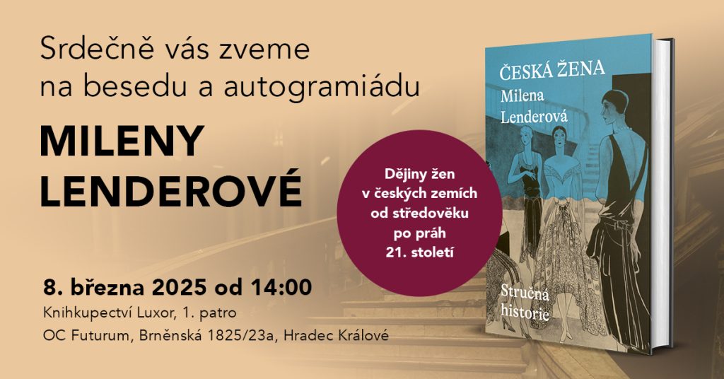 Srdečně vás zveme na besedu a autogramiádu autorky Mileny Lenderové k její nové knize Česká žena: Stručná historie. Akce proběhne v sobotu 8. března od 14 hodin v knihkupectví Luxor v OC Futurum v Hradci Králové.