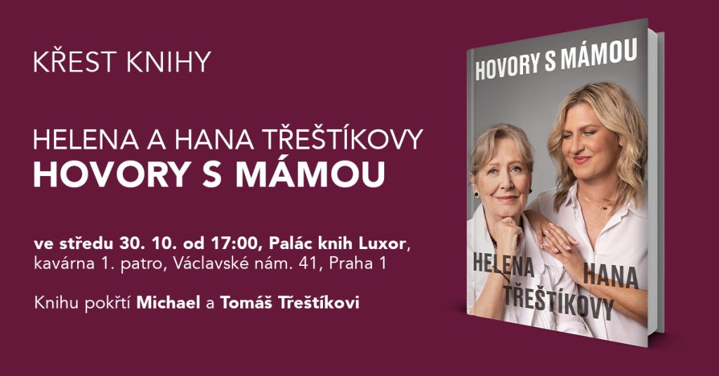 Srdečně vás zveme na křest knihy Heleny a Hany Třeštíkových Hovory s mámou. Akce proběhne ve středu 30. října od 17 hodin v kavárně Paláce knih Luxor (Václavské nám. 41, 1. patro) v Praze.
