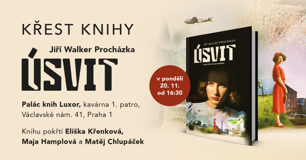 Srdečně vás zveme na křest knihy Jiřího Walkera Procházky Úsvit, který proběhne v pondělí 20. listopadu v 16:30 v kavárně Paláce knih Luxor v Praze (Václavské nám. 41, 1. patro).