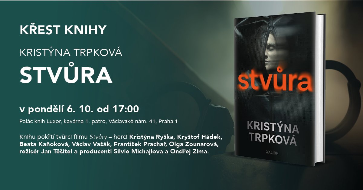 Srdečně vás zveme na křest knihy Kristýny Trpkové StvůraAkce proběhne v pondělí 6. října od 17 hodin v kavárně Paláce knih Luxor (Václavské nám. 41, 1. patro) v Praze.