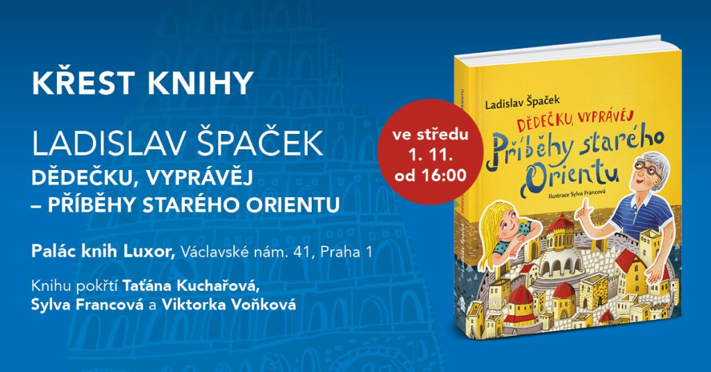 Srdečně vás zveme na křest knihy Ladislava Špačka Dědečku, vyprávěj: Příběhy starého Orientu, který proběhne ve středu 1. listopadu od 16 hodin v kavárně Paláce knih Luxor v Praze (Václavské nám. 41, 1. patro). Nový díl oblíbené knižní série pokřtí Taťána Kuchařová, Sylva Francová a Viktorka Voňková.