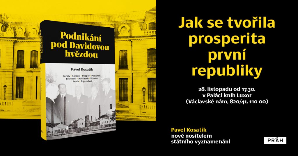 Srdečně vás zveme na křest knihy nositele státního vyznamenání Pavla Kosatíka Podnikání pod Davidovou hvězdou. Akce proběhne ve čtvrtek 28. listopadu od 17:30 v kavárně Paláce knih Luxor (Václavské nám. 41, 1. patro) v Praze.