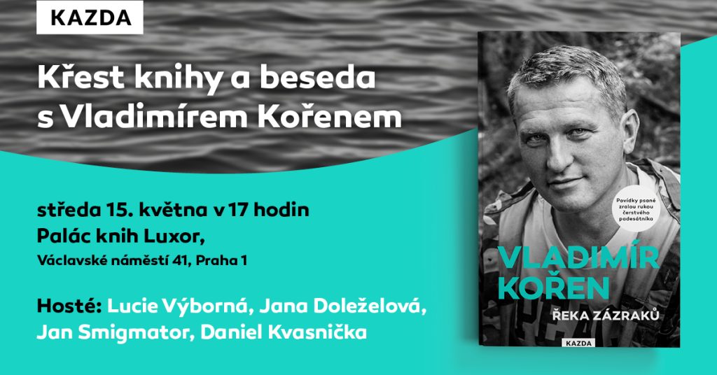 Srdečně vás zveme na křest povídkové knihy Vladimíra Kořena Řeka zázraků. Následovat bude i beseda s autorem. Akce se koná ve středu 15. května od 17 hodin v kavárně Paláce knih Luxor (Václavské nám. 41, 1. patro) v Praze.