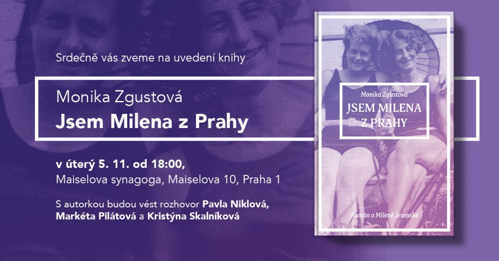 Srdečně vás zveme na uvedení knihy Moniky Zgustové Jsem Milena z Prahy! Akce proběhne v úterý 5. listopadu od 18 hodin v Maiselově synagoze v Praze (Maiselova 10, Praha 1).