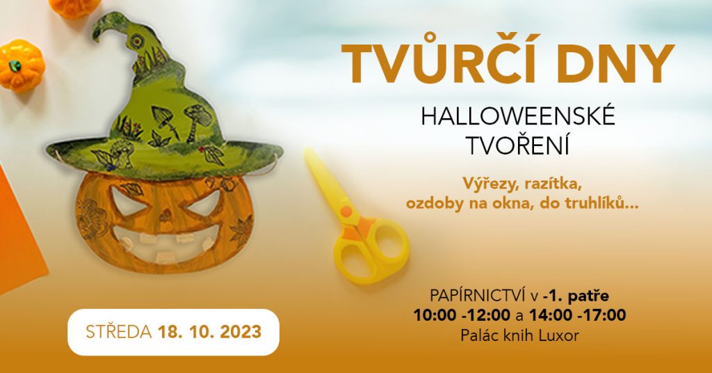 Srdečně vás zveme na další TVŮRČÍ DEN v Paláci knih Luxor! Ten se ponese v duchu halloweenského tvoření. Prezentovat se zde budou zajímavé techniky, kterými si můžete vytvořit vlastní výzdobu – výřezy, razítka, ozdoby na okna i do truhlíků… Akce se koná ve středu 18. října v čase 10–12 hodin a 14–17 hodin, a to v -1. patře Paláce knih Luxor (Václavské nám. 41, Praha) v oddělení papírnictví.