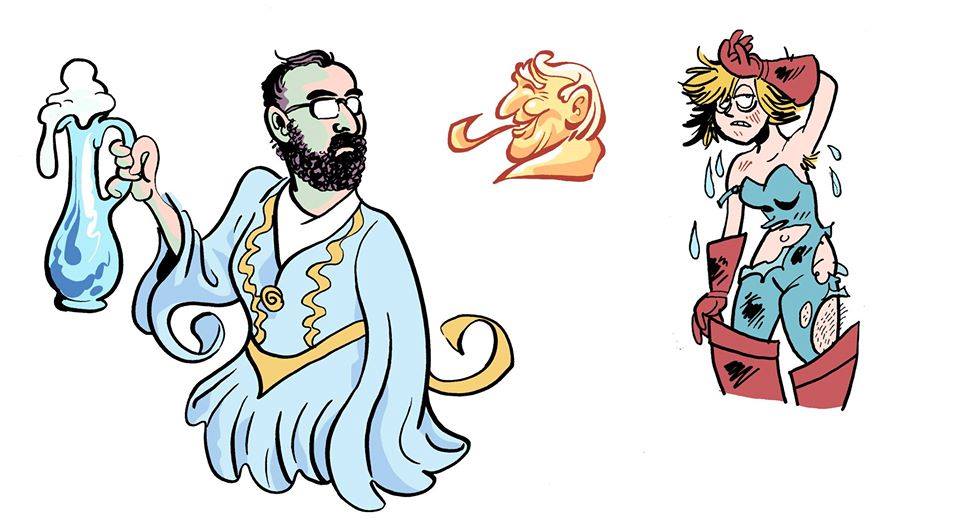 Boris Hokr aka Galadriel. Originální portrét od výborného komiksového kreslíře, ilustrátora a animátora Dana Černého (Češi, Kejda, Jelita, pravidelně přispívá do Pevnosti a Čtyřlístku). Totožnost autora vprostřed si můžete domyslet.