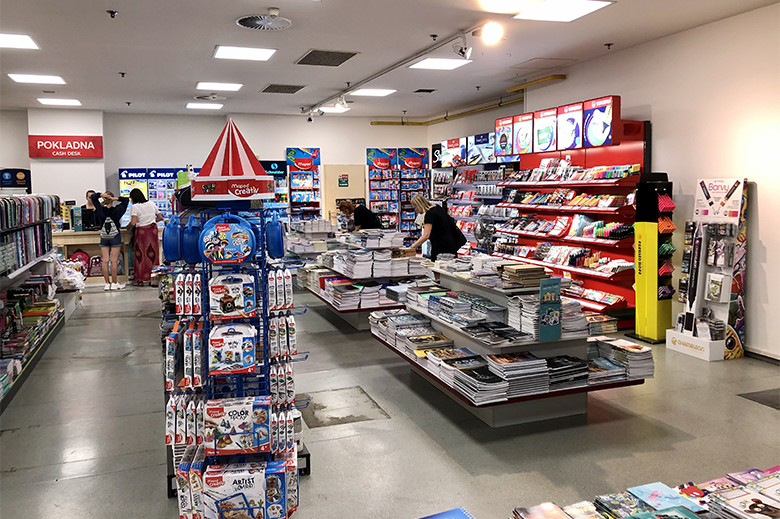 Velké oddělení beletrie na vás stále čeká v prvním podzemní podlaží Paláce knih Luxor. Samozřejmě si můžete nakoupit i plnou náruč komiksů. Ale! Od nynějška v -1 najdete také rozsáhlé oddělení papírnictví, kde se mohou vyřádit všichni milovníci tužek, nůžek, sešitů a jiných kancelářských potřeb. Umělci zaplesají nad výběrem výtvarných potřeb a chytrých maličkostí pro ruční práce. A školáci si zde pochopitelně pořídí všechno od aktovky po zápisník. Cestovatelé mohou na své drahé (ztracené na několik hodin v papírnictví) počkat hned vedle, v ráji cestopisů, map, průvodců a globusů.
