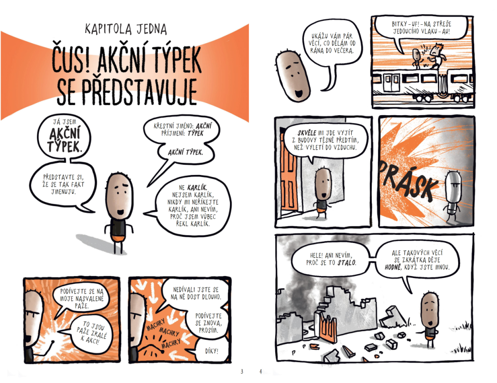 Skáče z vrtulníků, rozbíjí lodě, běhá po vrcholcích jeřábů a vychází z budov těsně před výbuchem. Je to ten nejodvážnější týpek, jaký kdy existoval! Dětský komiks od autora Králíčkových sebevražd je tak vtipný, že až vaše ratolesti usnou, možná si ho na jeden večer ukořistíte pro sebe.