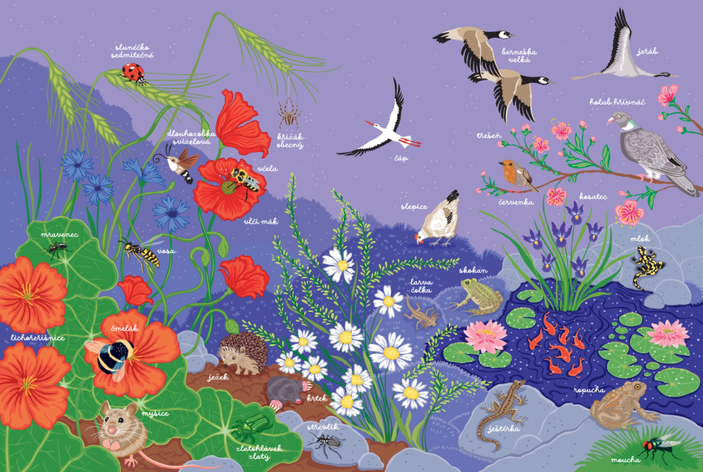 Čekají vás prázdniny u babičky, na chatě nebo třeba v kempu? Vezměte s sebou knížku, která vám pomůže rozpoznat a náležitě ocenit všechny divy tamější přírody! Projděte se mezi loukami, poli a zahradami a všímejte si, jak krásné je divoké kvítí i jak zvířata pomáhají v zahradničení. Naučíte se také vyrobit hmyzí hotel, krmítko pro ptáky a spoustu dalších drobností.