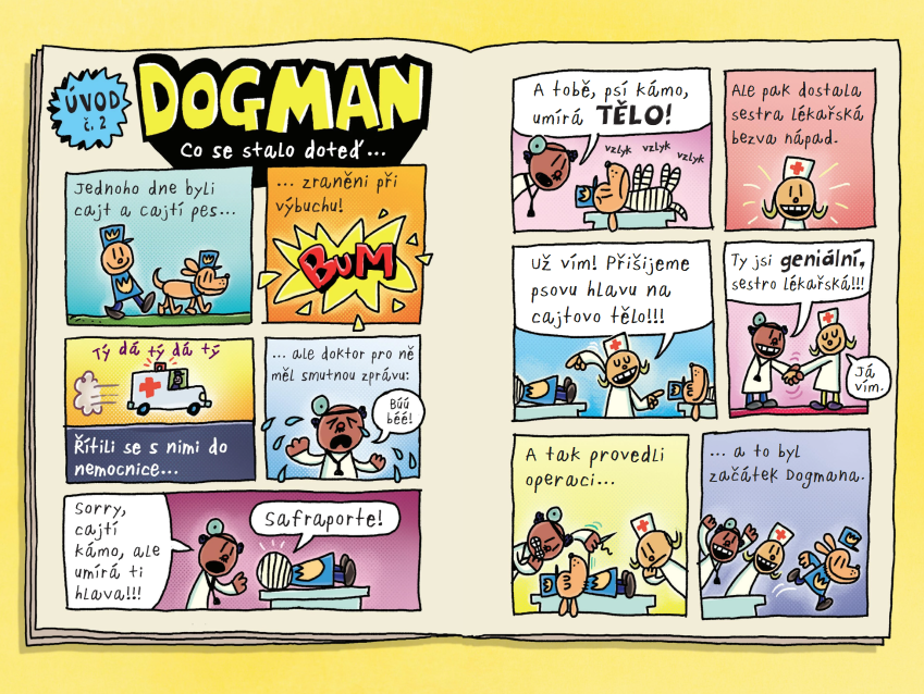 Kresleného hrdinu s psí hlavou a nejlepšího „psolicajta“ na světě, který bojuje nejen s pes-právím, ale i blechami, milují čtenáři všech věkových kategorií. Zatímco děti naprosto odzbrojí bláznivými situacemi, humornými zvraty a místy dětinskými vtipy (schválně, kolik eufemismů pro prdy dokážete objevit), pro dospělé skrývá celou řadu inteligentních (a bravurně přeložených) slovních hříček.