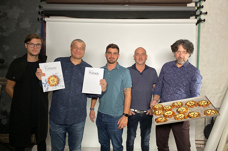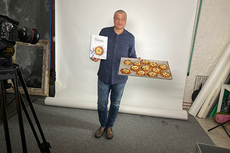 Využívali jsme pokažených záběrů, abychom mohli uloupit jeden z těch nádherných stříhaných koláčů. Jeden z nich najdete i na přebalu knihy a v kuchařce samozřejmě i podrobný recept na přípravu hrdiny budoucího reklamního spotu. ?
