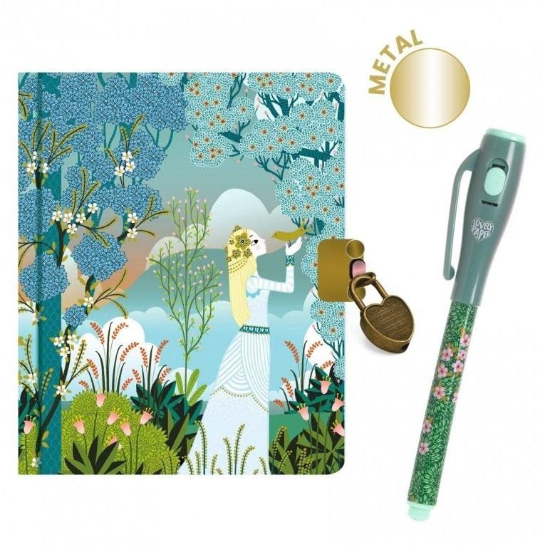 Malý tajný deník a neviditelné inkoustové pero tvoří nerozlučnou dvojku pro uchování dívčího tajemství. Vše co chcete zachovat v utajení napište neviditelným inkoustem. Chcete odhalit tajemství? Kresby i písmo jsou čitelné pouze pod uv světlem, které je součástí uzávěru magického pera. Zápisník má celkem 88 linkovaných stran. Má zámek a dva klíče, aby byly všechny zapsané příběhy v bezpečí před zvědavými pohledy. Obal má třpytivý povrch s metalickými detaily. Tento krásně ilustrovaný deník je ideální dárek pro dívky od 6 let.