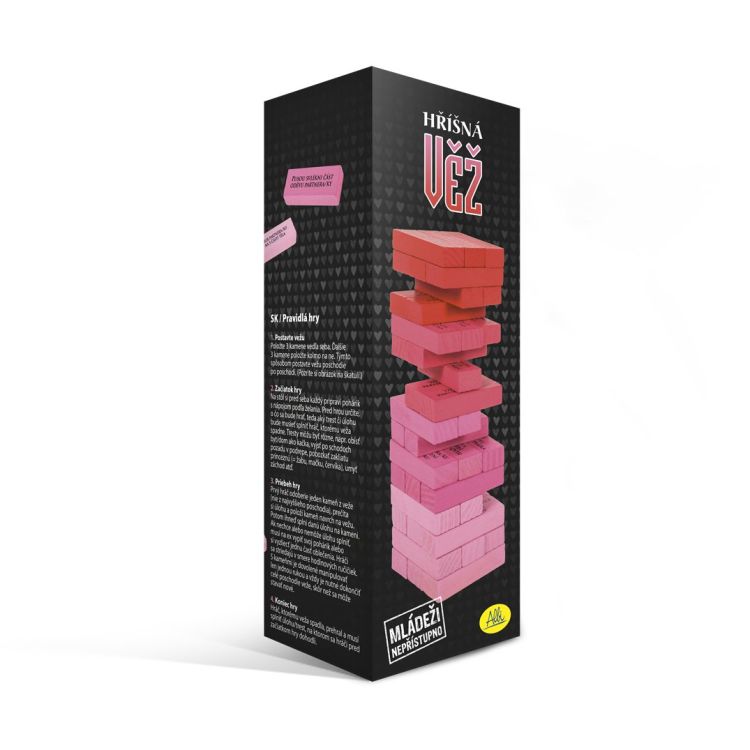 Hra, která je ideální pro dvojice nebo na odvážnou párty. Stavění věže dostane nový rozměr! Na dřevěných kamenech se skrývají mírně lechtivé úkoly, které musí hráči ihned splnit, nebo dát fant, či vypít oblíbený drink. VĚK 18+