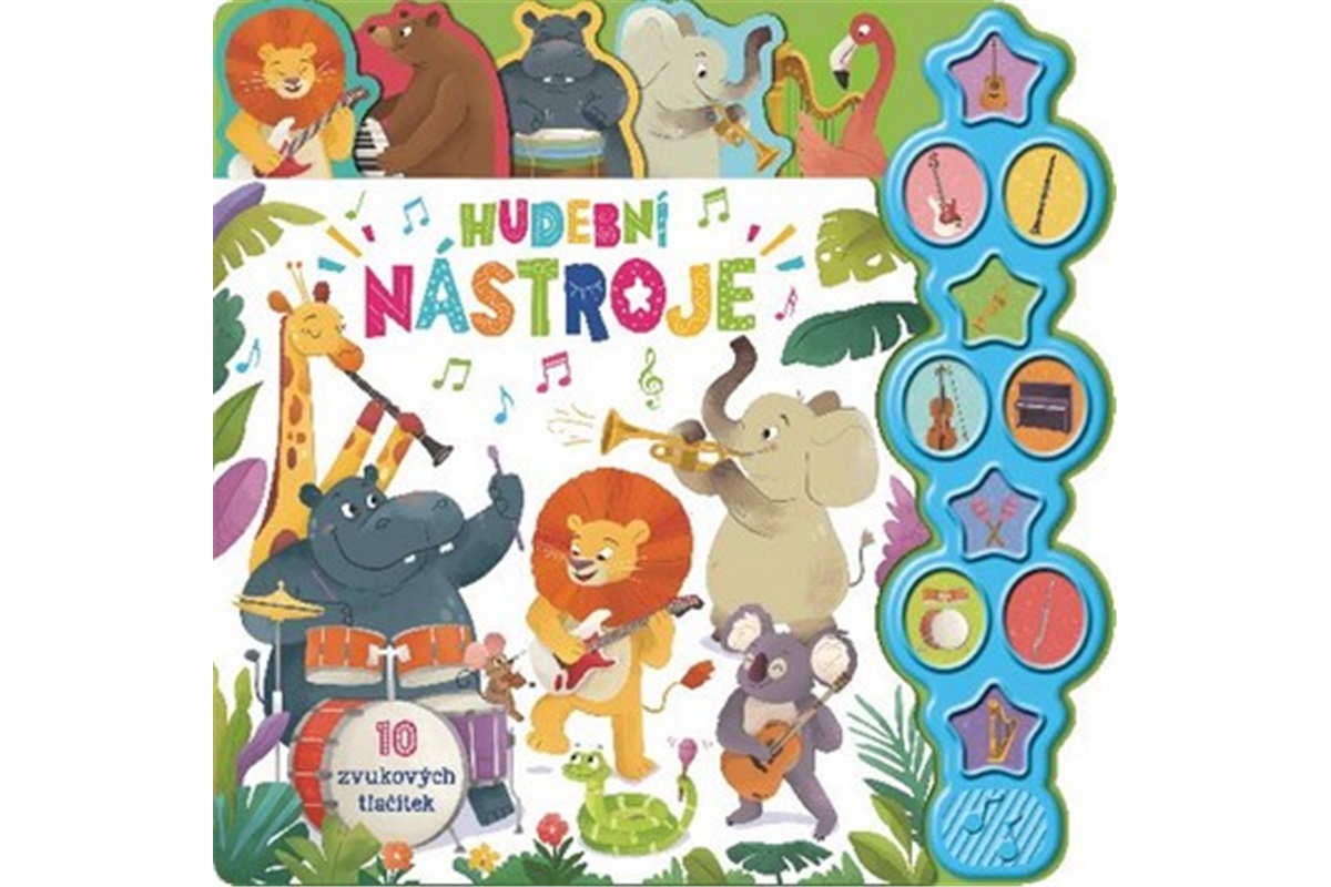 V této knížce, která na první pohled upoutá zajímavým designem, se děti seznámí s celkem deseti hudebními nástroji, jako je kytara, housle, bubny,