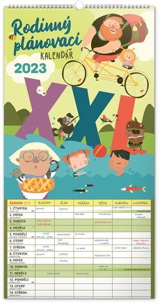 Velký formát kalendáře pro celou rodinu. České kalendárium a samostatný plánovač aktivit pro až šest členů domácnosti, vyzdoben veselými grafickými motivy pro každé roční období. S dostatečným prostorem pro poznámky vám neuteče žádná důležitá událost.