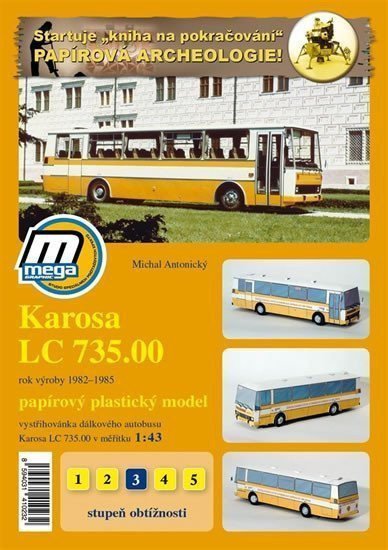 Papírový model dodnes oblíbeného autobusu Karosa LC 735.00 v klasickém žlutém nátěru od vydavatele Mega Graphic / Michala Antonického v měřítku 1:43.Pouze model autobusu, tato verze neobsahuje Papírovou archeologii 1. Vystřihovánka modelu obsahuje 4 listy dílů, textový návod s návodnými kresbami a informace o předloze a historii autobusu přímo od „zdroje“ – pracovníků bývalé Karosy Vysoké Mýto.Model je určen i pro méně zkušené modeláře – obtížnost sestavení je střední (3 z 5).
