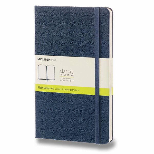 The Moleskine Classic Notebooks is a reliable travel companion, perfect for calculations, thoughts and passing notes. This sapphire blue hard cover notebook has rounded corners, acid free paper, a bookmark, an elastic closure and an expandable inner pocket.