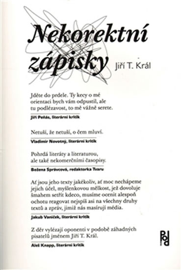 Výbor z textů jednoho z našich nejbřitčích a nejkontroverznějších internetových glosátorů, který se nevybíravě strefuje do médií, novinářů či kulturních publicistů. Mimo jiné se obsáhle zabývá Milanem Kunderou, o jehož vině v případě udání agenta-chodce Miroslava Dvořáčka nepochybuje. Ve svých glosách se často uchyluje k ironii, sarkasmu a černému humoru a svou přímočarou a nekompromisní polemikou vyráží oponentům dech.