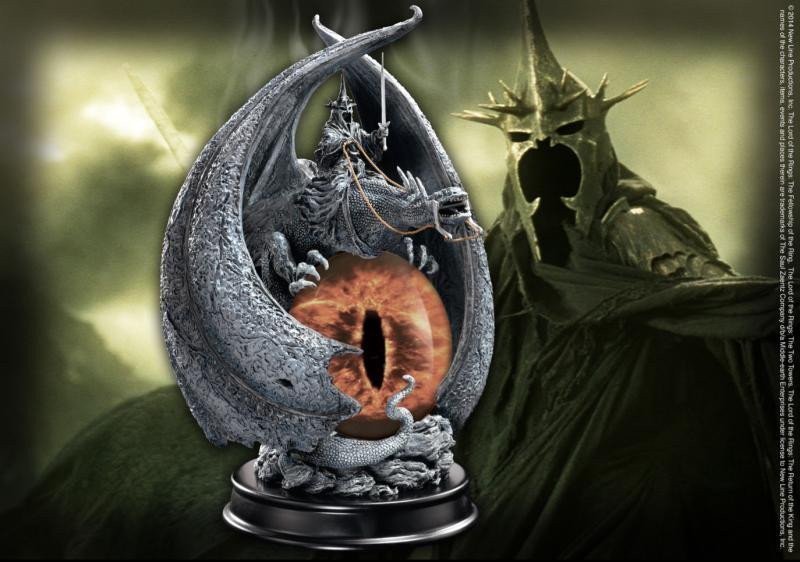 Svícen na františky ručně malovaný v podobě krále nazgůlů, který se svým nazgůlem sedí na Sauronově oku. Prostor na františky se nachází za Sauronovým okem. Stačí umístit františek do kovového podstavce a sledovat kouř. Výška sošky cca 20 cm.