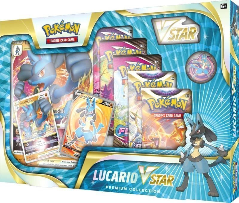 Pokémon Lucario VSTAR Premium Collection je limitovaný dárkový produkt karetní hry Pokémon, který umožňuje hráčům snadno získat silného Pokémona Lucario V ve sběratelsky hodnotné alt art verzi a Luciario VSTAR, který znamená další evoluční stupeň k Vašemu silnému balíčku.