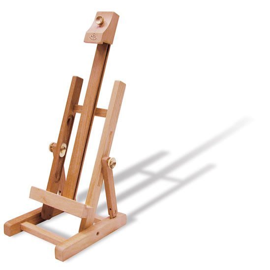 Kvalitní mini stolní stojan vyroben z bukového dřeva, přírodní lak. Rozměry: výška 43cm, max. výška plátna 28cm. Váha stojanu 0,45kg.