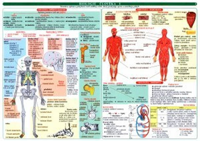 Dvě tabulky jsou určené žákům a studentům přírodopisu. Názorně na obrázcích představují přehled učiva o biologii člověka členěný na soustavu opěrnou a pohybovou, oběhovou, imunitní, dýchací, trávicí, řídící, kožní, močovou a rozmnožovací. Předností tabulky je slovníček cizích pojmů, vyskytujících se v popisu učiva.