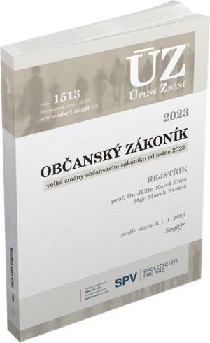 Od ledna 2023 dochází k velkým změnám občanského zákoníku – uzavírání smluv, záruka za jakost, práva z vadného plnění, postavení spotřebitele, zneužívající ujednání, odstoupení od smlouvy a další změny (zde); nově jsou zařazena ustanovení ohledně poskytování digitálního obsahu. Do textu jsou rovněž zapracovány změny, které souvisejí se změnami v oblasti autorského práva – odměna za poskytnutí licence, nečinnost nabyvatele licence a další. Všechny změny jsou vyznačeny tučně. Pro orientaci v rozsáhlém textu zákoníku byl aktualizován také podrobný věcný rejstřík, který zpracoval prof. Karel Eliáš a Mgr. Marek Svatoš.Občanský zákoník dosud v edici ÚZ vyšel pod číslem 900, 1169, 1275, 1380 a 1434. Toto č. 1513 se od č. 1434 liší v předpisech zvýrazněných v obsahu tučně.Obsah: Přehled občanského zákoníku Zákon č. 89/2012 Sb., občanský zákoník – účinnost od 6. 1. 2023 Věcný rejstřík k občanskému zákoníku